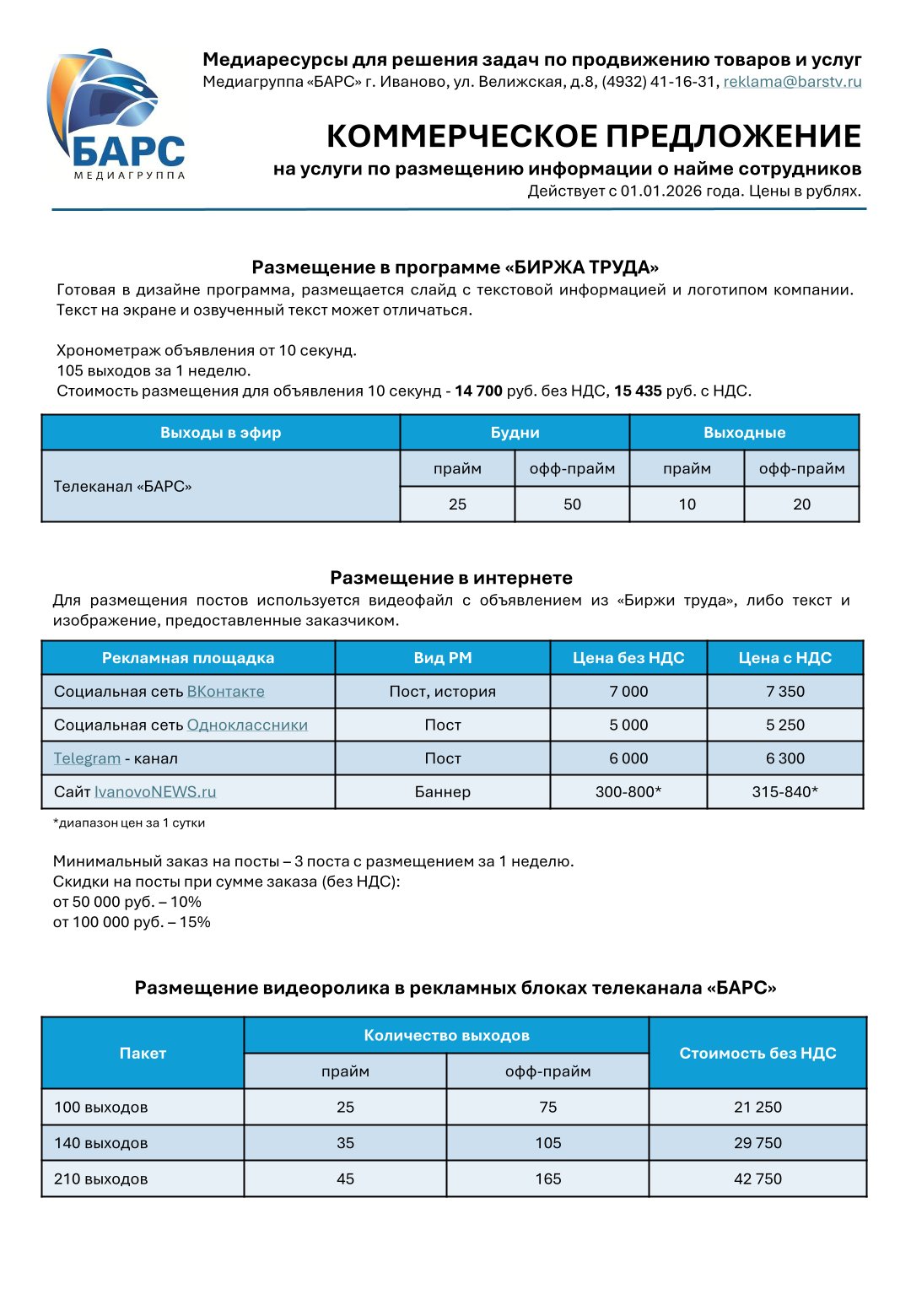 Биржа труда: ТВ и интернет